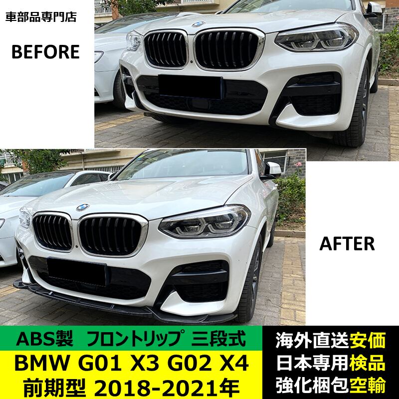 BMW G01 X3 G02 X4 前期型 2018-2021年 適用 三段式フロントリップ ガーニッシュ リップカバースポイラー キズ防止 ABS製