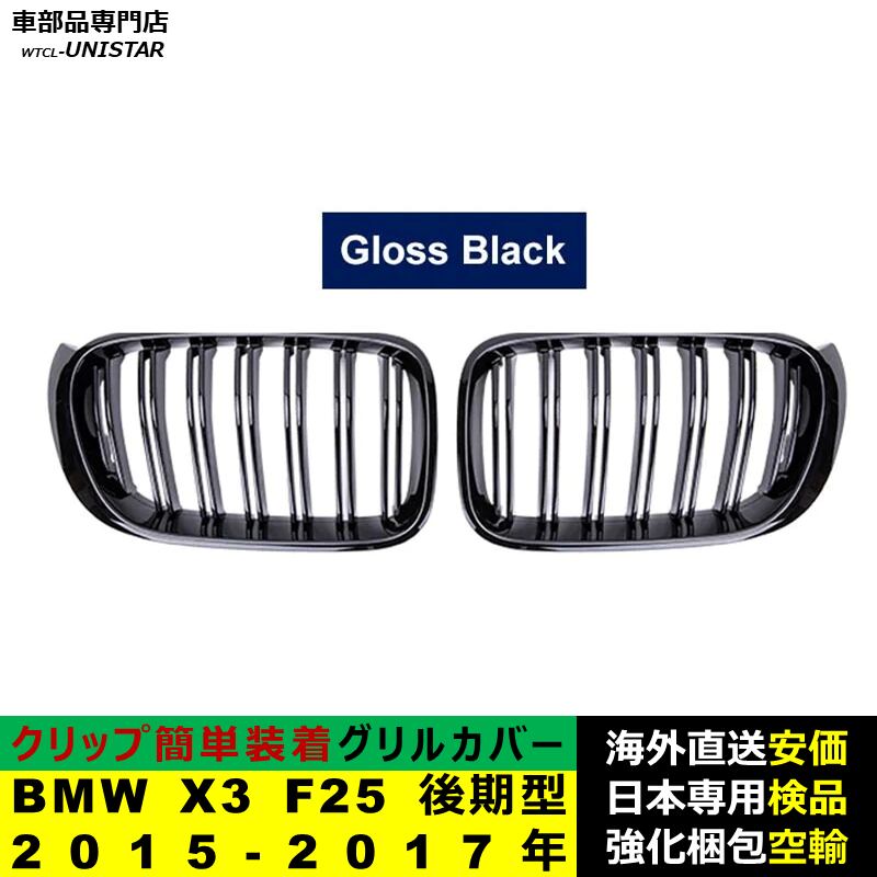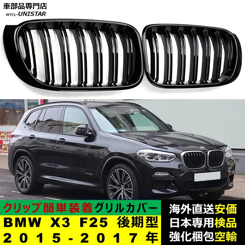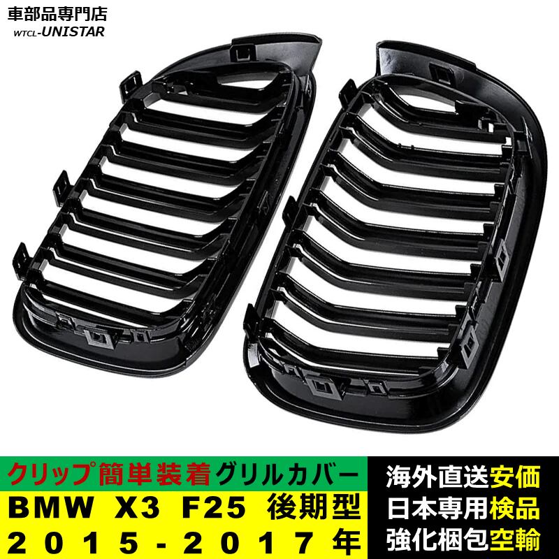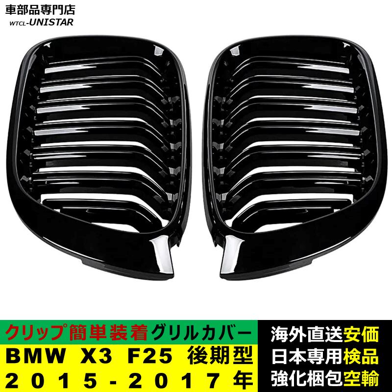 BMW X3 F25 後期型 2015-2017年 適用 フロント グリル キドニーグリル バンパー トリム カバー スラット ストラップ Mスタイル M Sports Mスポーツ ABS製 | unistarcar