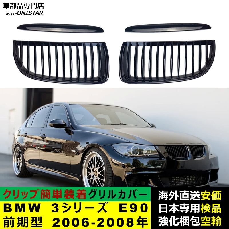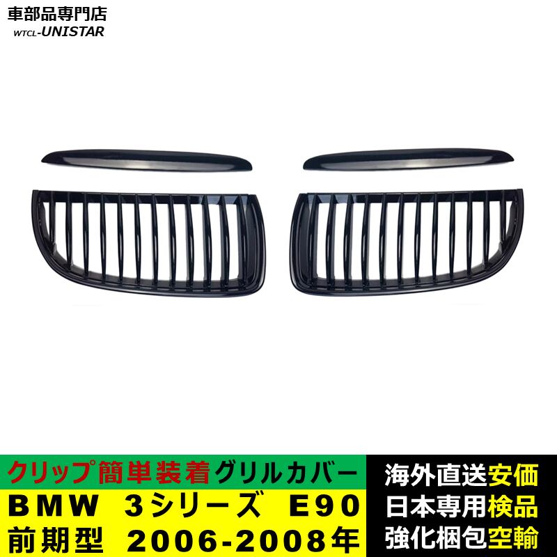 BMW 3シリーズ E90 前期型 2006-2008年 適用 フロント グリル キドニーグリル バンパー トリム カバー スラット ストラップ Mスタイル M Sports Mスポーツ ABS製 | unistarcar