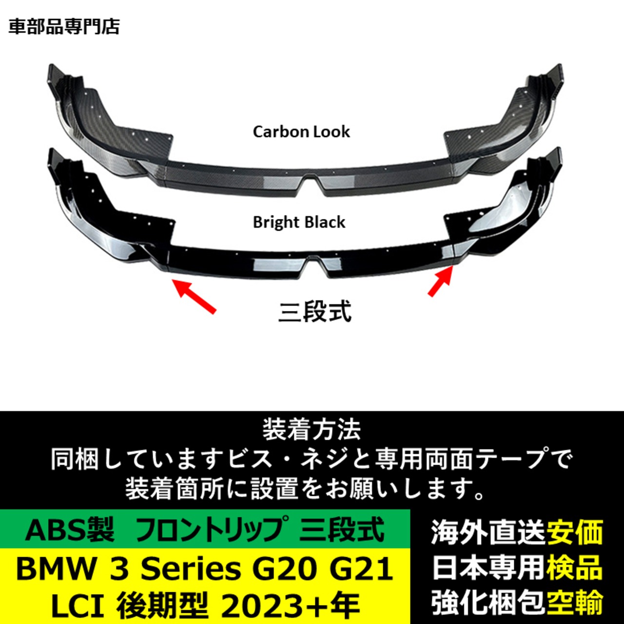 三段式フロントリップ 互換品 BMW 3シリーズ G20 G21 LCI 後期型 2023-2024年適用 ガーニッシュ リップカバースポイラー キズ防止 ドレスアップ スポイラー | unistarcar
