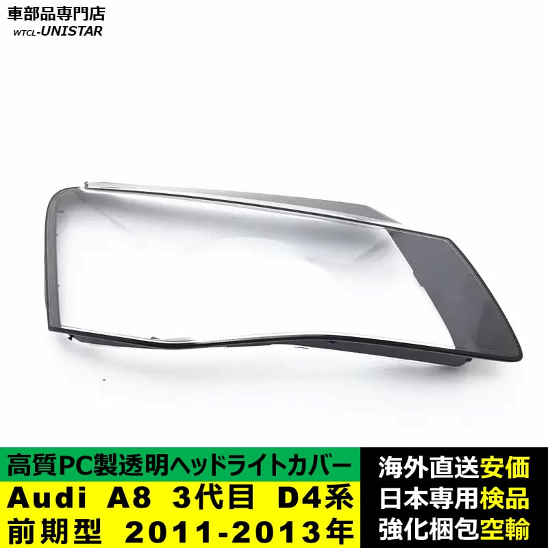 ヘッドライトカバー 互換品 Audi A8 3代目 D4系 前期型 2011-2013年 適用 ヘッドランプ透明レンズ ランプシェード高質PC製 アウディ