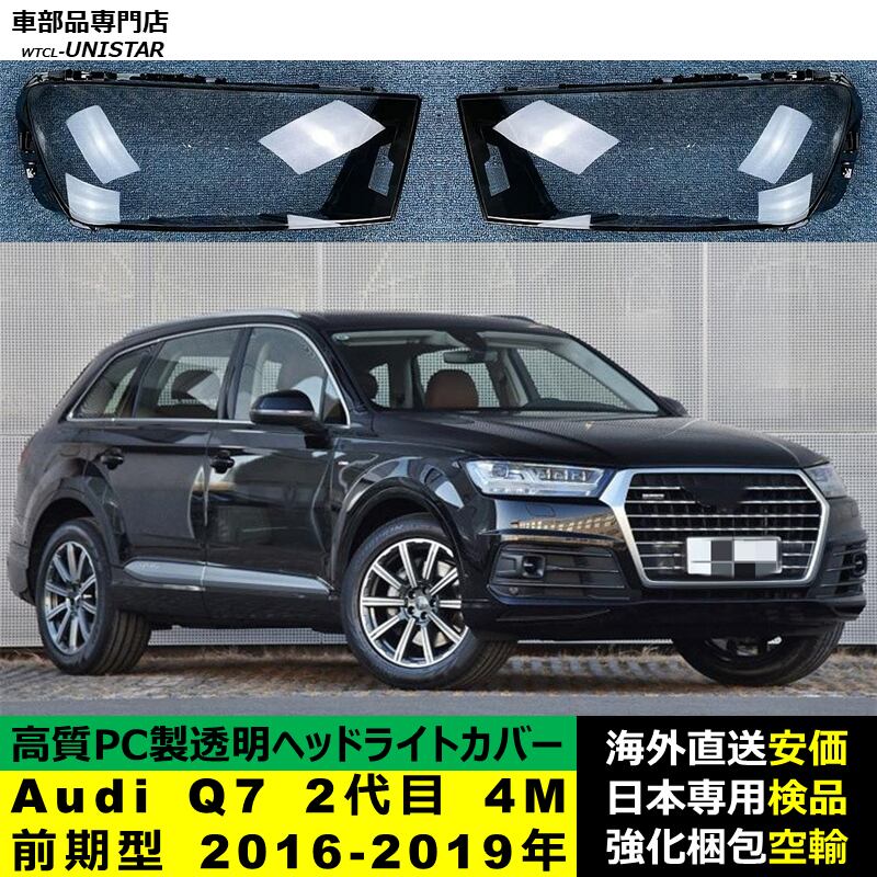 ヘッドライトカバー 互換品 Audi Q7 2代目 4M 前期型 2016-2019年 適用 ヘッドランプ透明レンズ ランプシェード高質PC製 アウディ