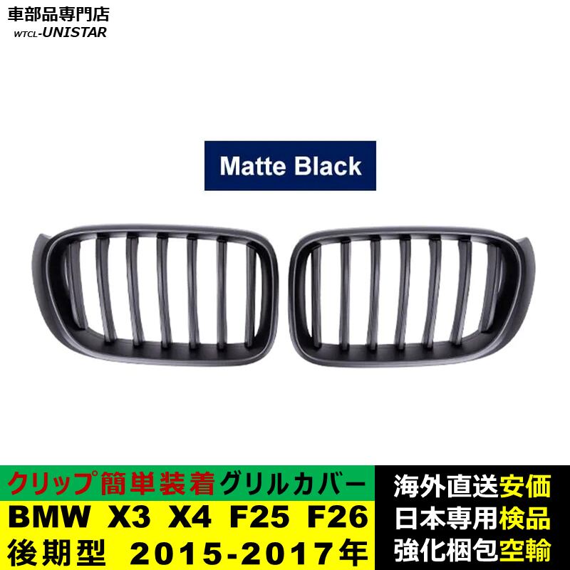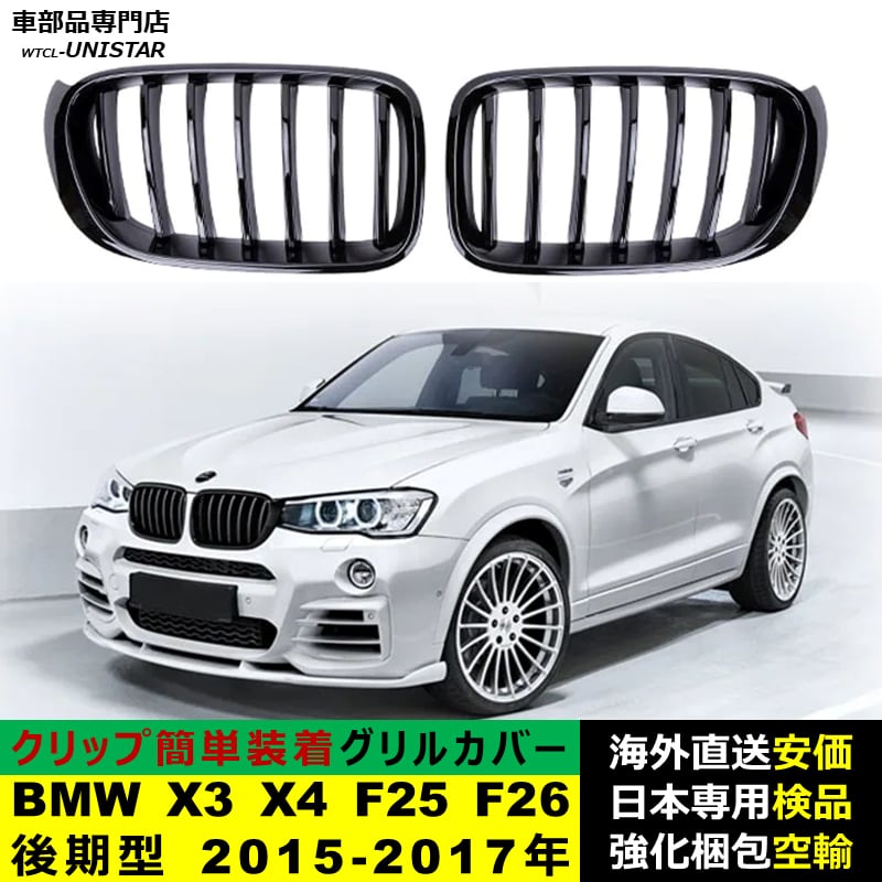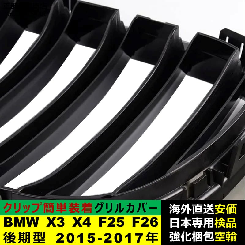 フロント グリル カバー 互換品 BMW X3 X4 F25 F26 後期型 2015-2017年 適用 キドニーグリル バンパー トリム カバー Mスタイル Mスポーツ