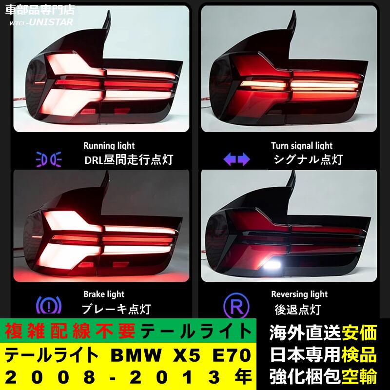 テールライト 汎用品 BMW X5 E70 2008-2013年 適用 アップグレード LED アニメーションライト オープニングモーション 付き