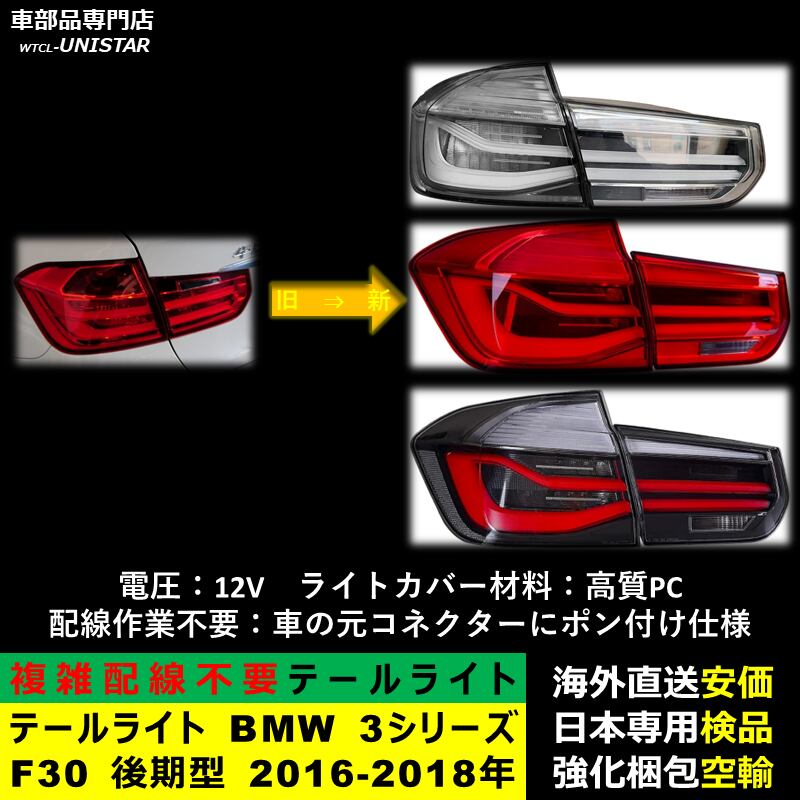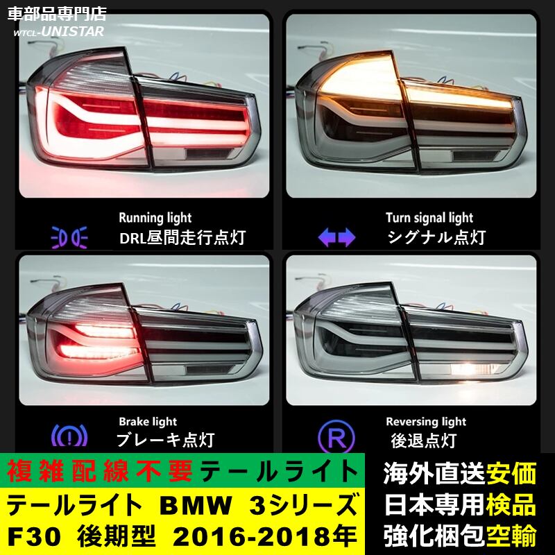 テールライト 汎用品 BMW 3シリーズ F30 後期型 2016-2018年 適用 新型化 アップグレード LED アニメーションライト オープニングモーション 付き