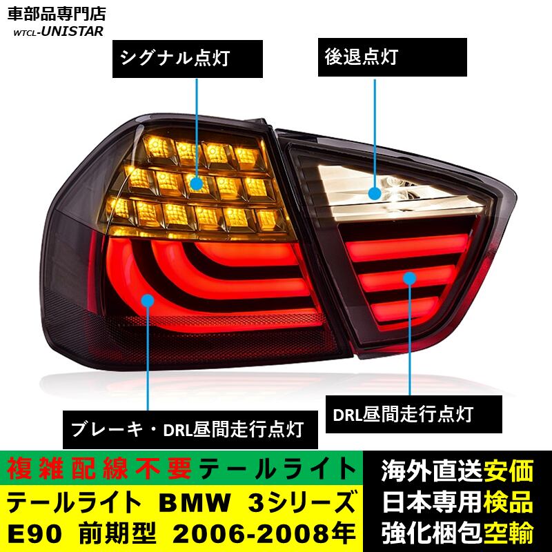 テールライト 汎用品 BMW 3シリーズ E90 前期型 2006-2008年 適用 新型化 アップグレード LED アニメーションライト オープニングモーション 付き