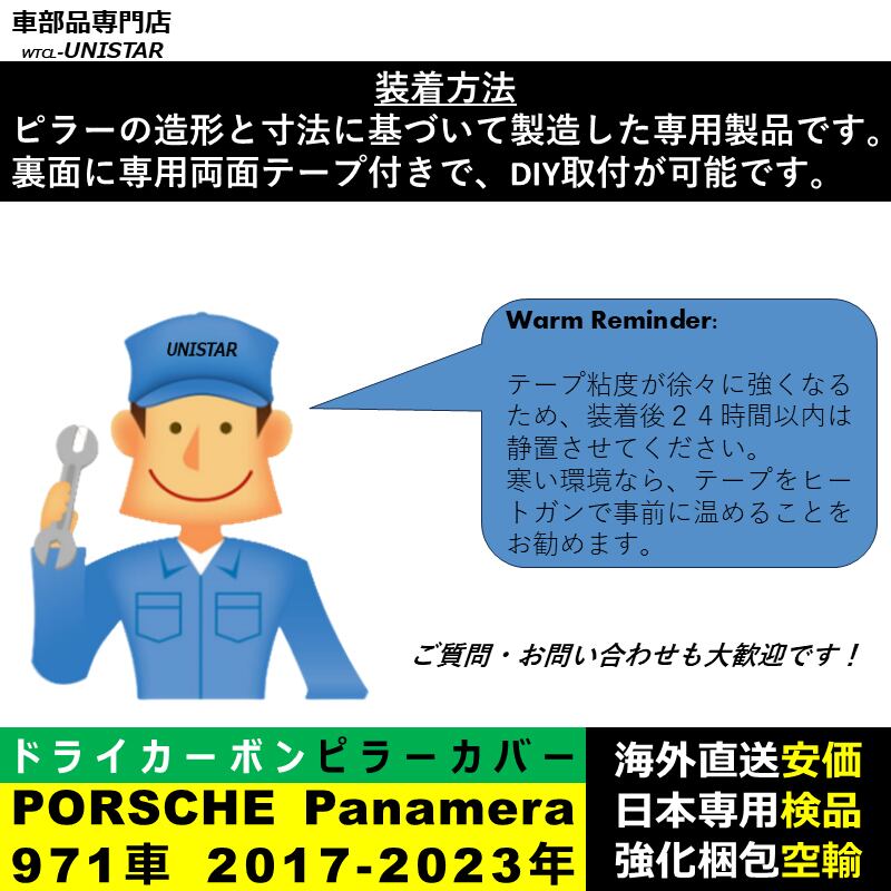 PORSCHE ポルシェ panamera パナメーラ 971 2017-2023年適用 汎用品 センター Bピラー 高級ドライ式カーボンファイバー製 トリム ステッカー トリム 簡単取付 | unistarcar