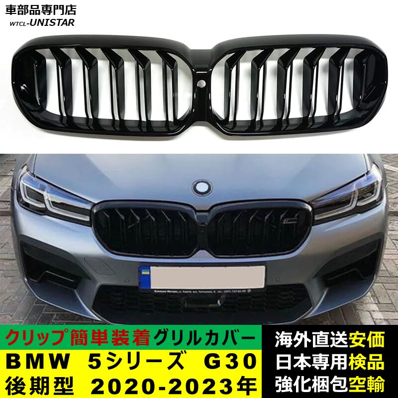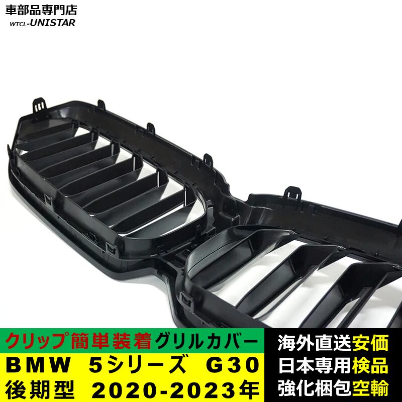 フロントグリル 互換品 BMW 5シリーズ G30 後期型 2020-2023年適用 キドニーグリル バンパー トリム カバー スラット ストラップ Mスタイル M Sports Mスポーツ ABS製 | unistarcar