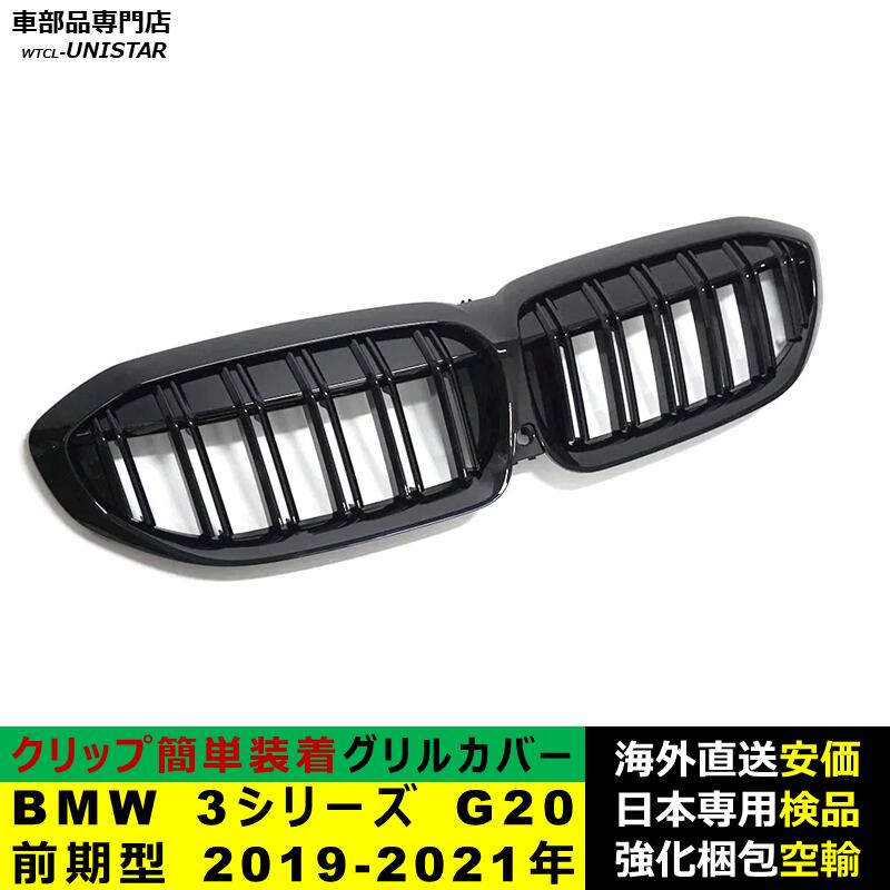 フロントグリル 互換品 BMW 3シリーズ G20 前期型 2019-2021年適用 キドニーグリル バンパー トリム カバー スラット ストラップ Mスタイル M Sports Mスポーツ ABS製 | unistarcar