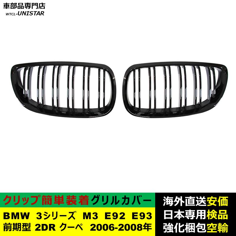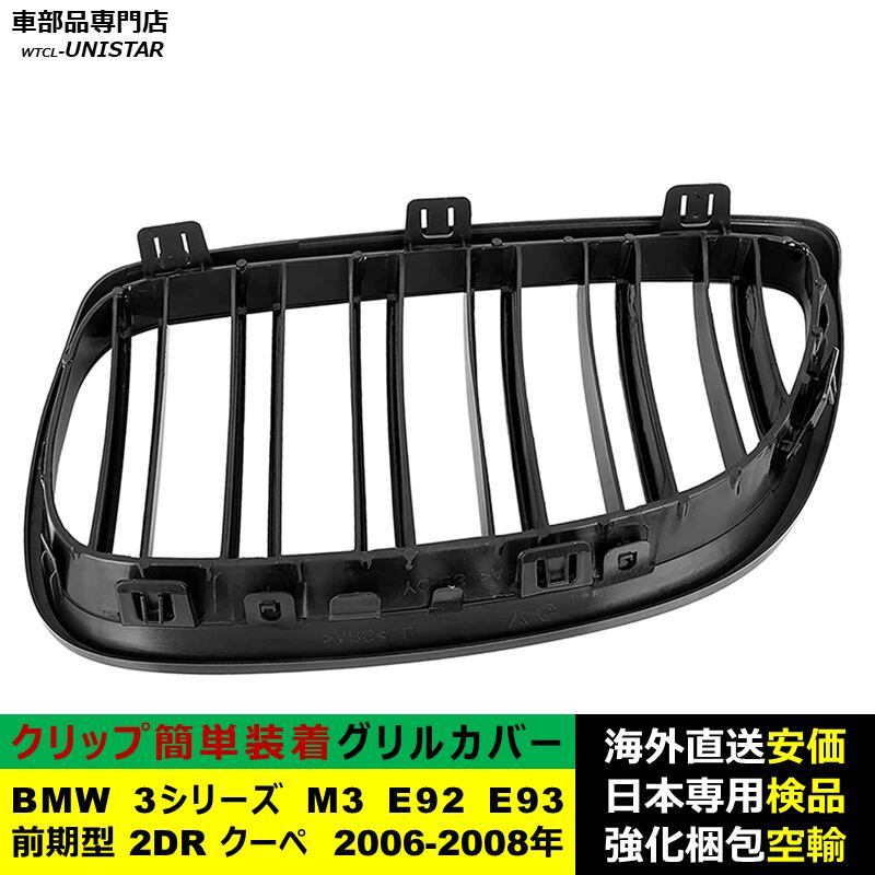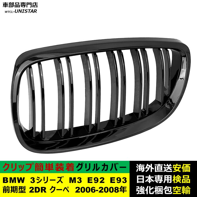 フロントグリル 互換品 BMW 3シリーズ M3 E92 E93 前期型 2DR クーペ 2006-2008年適用 フロントグリル キドニーグリル バンパー トリム カバー Mスタイル M Sports Mスポーツ | unistarcar