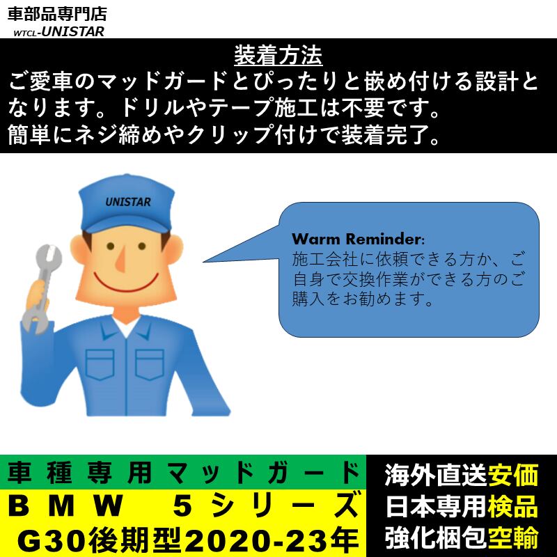 マッドガード 互換品 フロント リア ホイール 汚れ防止 BMW 5シリーズ G30 後期型 2020-2023年適用 マッドフラップ アクセサリー フェンダー DIY 簡単 1台分セット | unistarcar