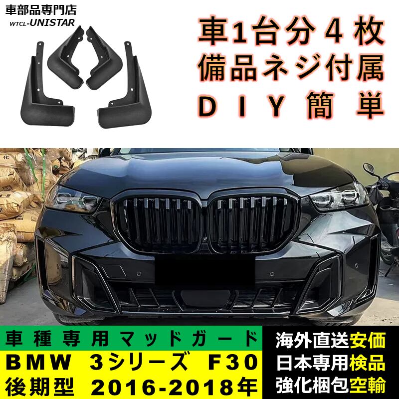 マッドガード 互換品 フロント リア ホイール 汚れ防止 BMW 3シリーズ F30 後期型 2016-2018年適用 マッドフラップ アクセサリー フェンダー DIY 簡単 1台分セット | unistarcar