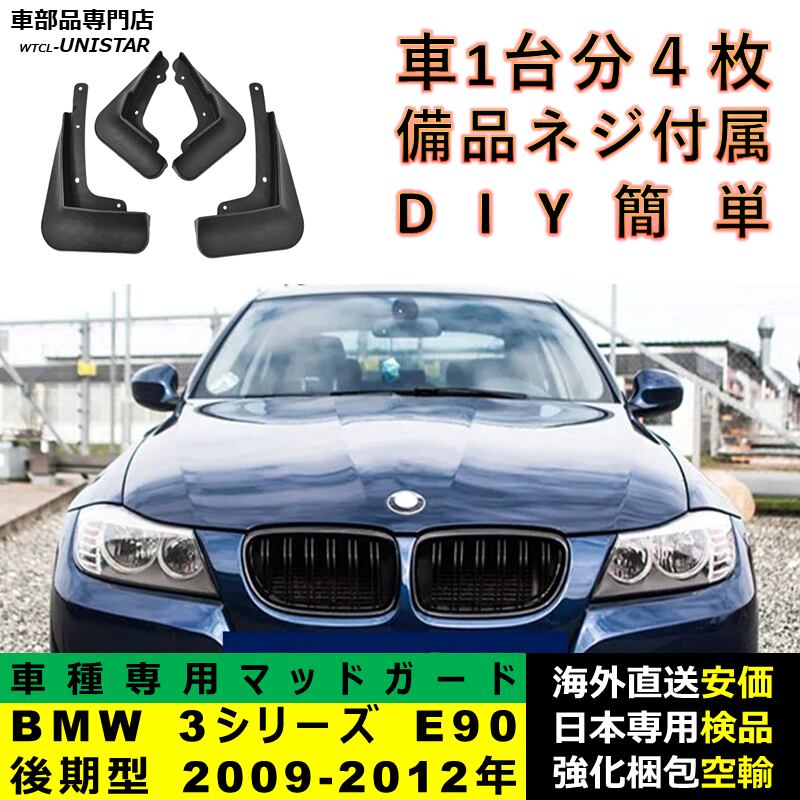 マッドガード 互換品 フロント リア ホイール 汚れ防止 BMW 3シリーズ E90 後期型 2009-2012年適用 マッドフラップ アクセサリー フェンダー DIY 簡単 1台分セット | unistarcar