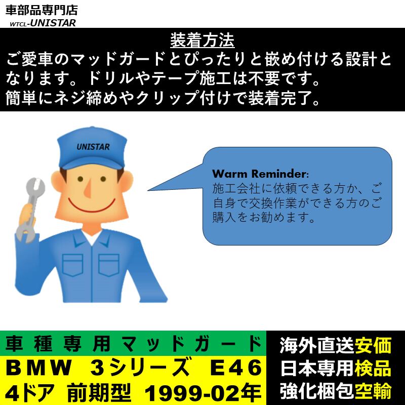 マッドガード 互換品 フロント リア ホイール 汚れ防止 BMW 3シリーズ E46 4ドア 前期型 1999-2002年 適用 マッドフラップ アクセサリー フェンダー DIY 1台分セット | unistarcar