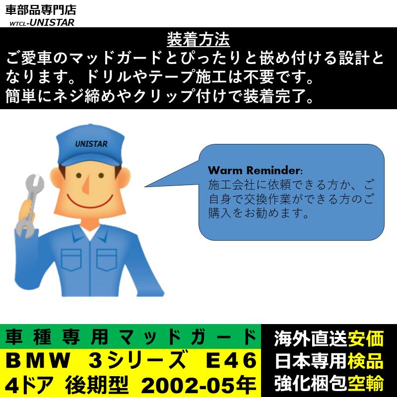 マッドガード 互換品 フロント リア ホイール 汚れ防止 BMW 3シリーズ E46 4ドア 後期型 2002-2005年 適用 マッドフラップ アクセサリー フェンダー DIY 1台分セット | unistarcar