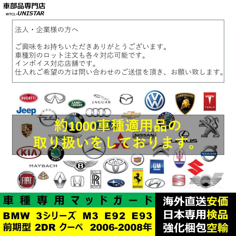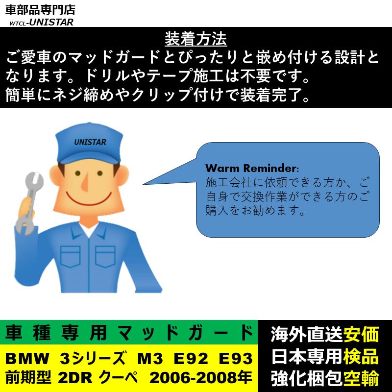 マッドガード 互換品 フロント リア ホイール 汚れ防止 BMW 3シリーズ M3 E92 E93 前期型 2DR クーペ 2006-2008年 適用 マッドフラップ アクセサリー フェンダー 1台 | unistarcar