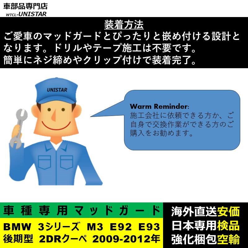 マッドガード 互換品 フロント リア ホイール 汚れ防止 BMW 3シリーズ M3 E92 E93 LCI 後期型 2DR クーペ 2009-2012年 適用 マッドフラップ フェンダー DIY 1台分 | unistarcar