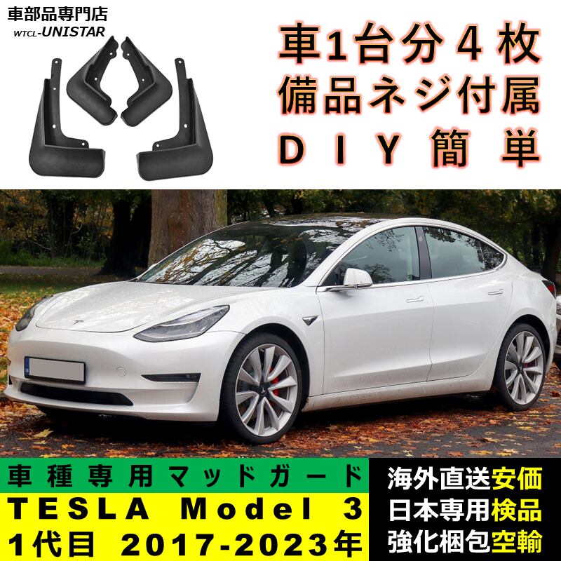 マッドガード 互換品 フロント リア ホイール 汚れ防止 TESLA テスラ Model 3 2017-2023年 適用 マッドフラップ アクセサリー フェンダー DIY 簡単 シンプル | unistarcar