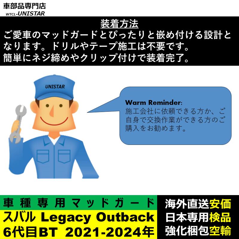 マッドガード 互換品 フロント リア ホイール 汚れ防止 SUBARU スバル Legacy Outback レガシィアウトバック 6代目BT 2021-2024年 適用 マッドフラップ DIY 簡単 | unistarcar