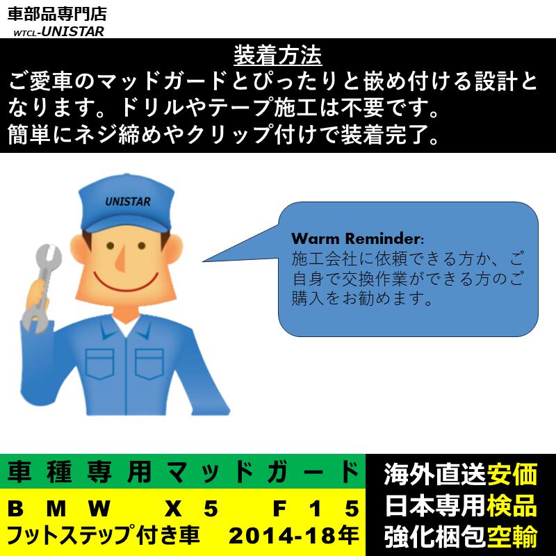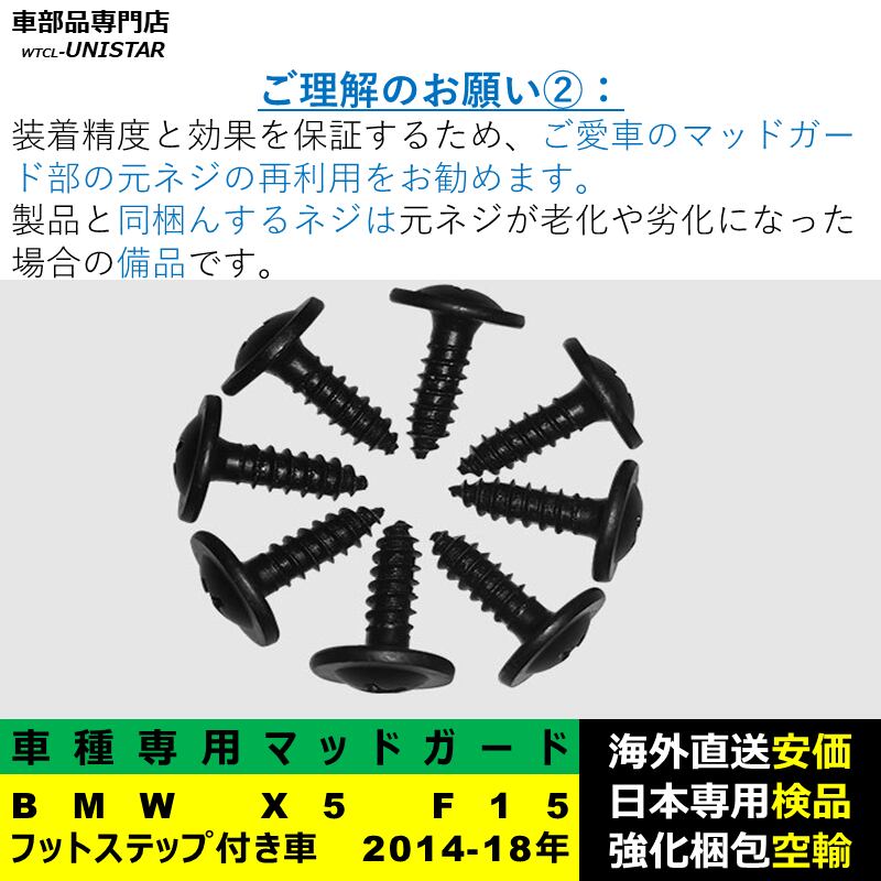 マッドガード 互換品 フロント リア ホイール 汚れ防止 BMW X5 F15 フットステップ付き車 2014-2018年 適用 マッドフラップ アクセサリー フェンダー DIY 簡単 シンプル | unistarcar
